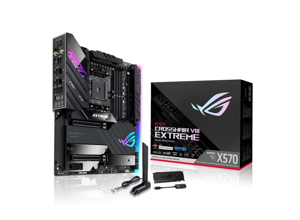 مانند دیگر مادربردهای X570، مادربرد پرچمدار ایسوس نیز دارای 4 اسلات برای قرارگیری رم‌های DDR4 است و می توانید تا 128 گیگابایت رم بر روی این مادربرد قرار دهید. در حال حاضر ایسوس حداکثر فرکانس رم قابل پشتیبانی توسط این مادربرد را اعلام نکرده اما انتظار می‌رود ROG Crosshair VIII Extreme رم‌هایی با حداکثر فرکانس 5100 مگاهرتز را در زمان همراه شدن با پردازنده‌های رایزن سری 5000 پشتیبانی کند.همچنین Crosshair VIII Extreme مجهز به شش پورت ساتا و پنج اسلات M.2 PCIe 4.0 x4 می‌باشد که البته برای استفاده از آن باید سیستم شما به رایزن سری 5000 یا 3000 باشد، در غیر این صورت اسلات‌ها در حالت PCIe 3.0 x4 فعالیت خواهند کرد. سه مورد از این اسلات‌ها مستقیما به پردازنده متصلند و دو اسلات دیگر به سمت چیپست X570 هدایت شده‌اند.